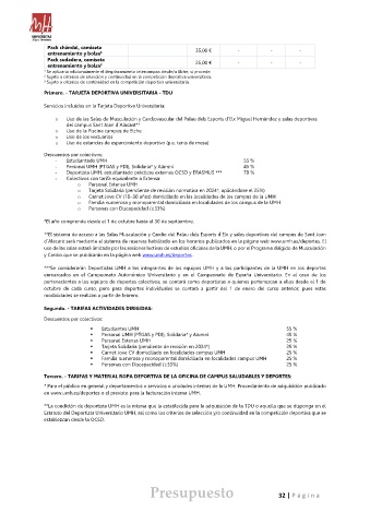 -   Deportista UMH, estudiantado prácticas externas OCSD y ERASMUS ***    70 %
