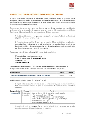 ANEXO T-IX: TARIFAS CENTRO EXPERIMENTAL CYBORG