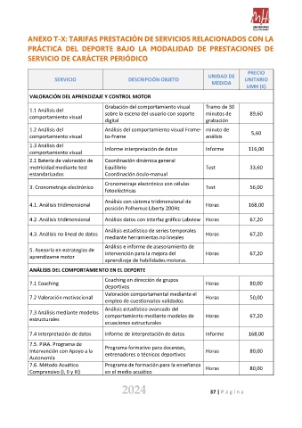 ANEXO T-X: TARIFAS PRESTACIÓN DE SERVICIOS RELACIONADOS CON LA