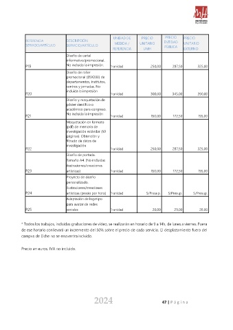 SERVICIO/ARTÍCULO SERVICIO/ARTÍCULO MEDIDA / UNITARIO PÚBLICA UNITARIO