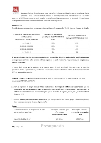 El precio del coworking (ya sea coworking de Innova o coworking del CIEB), aplicando las bonificaciones que
