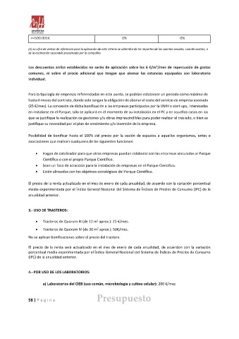 a) Laboratorios del CIEB (uso común, microbiología y cultivo celular): 200 €/mes
