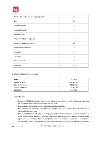 6.- SERVICIO ALQUILER DE LAS SALAS: