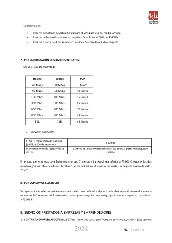• Reserva de Salones de Actos: Se aplicará el 50% para uso de media jornada.