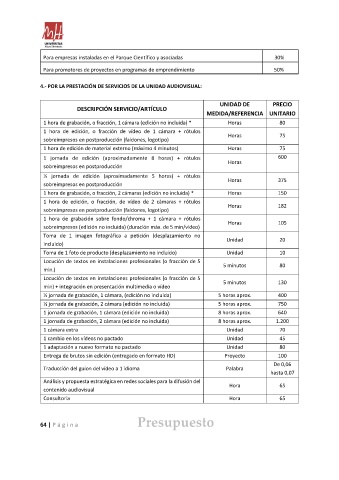 4.- POR LA PRESTACIÓN DE SERVICIOS DE LA UNIDAD AUDIOVISUAL: