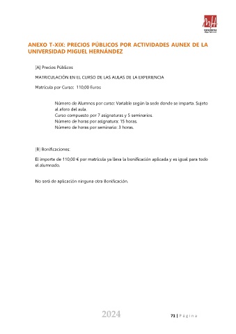 ANEXO T-XIX: PRECIOS PÚBLICOS POR ACTIVIDADES AUNEX DE LA