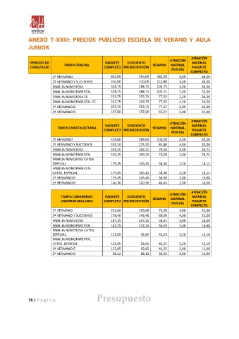 ANEXO T-XXIII: PRECIOS PÚBLICOS ESCUELA DE VERANO Y AULA