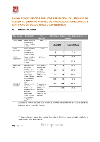 ANEXO T-XXIV: PRECIOS PÚBLICOS PRESTACIÓN DEL SERVICIO DE