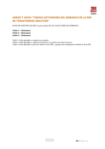 ANEXO T-XXVIII “TARIFAS ACTIVIDADES DEL BIOBANCO DE LA RED