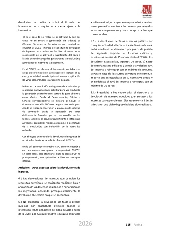 6.2 No procederá la devolución de tasas o precios