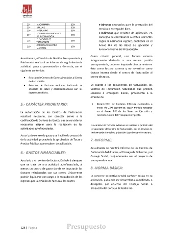 214 MAQUINARIA 12% ● Directos necesarios para la prestación del