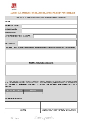 ANEXO B-XVIII: MODELO DE CANCELACIÓN DE ANTICIPO PENDIENTE POR INCOBRABLE