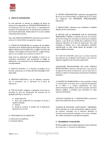 4. LÍNEAS DE SUBVENCIONES los indicativos del PROGRAMA PRESUPUESTARIO,