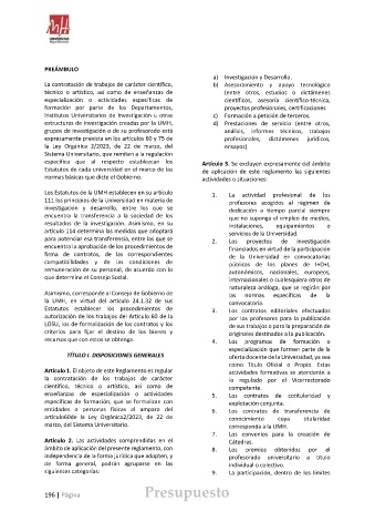 la contratación de los trabajos de carácter lo regulado por el Vicerrectorado