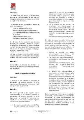 contratos regulados por este reglamento y estarán departamento o instituto universitario.