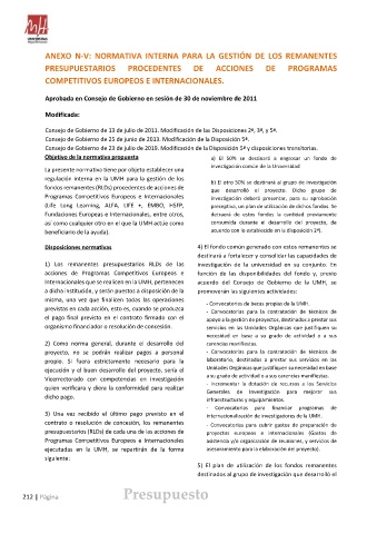 ANEXO N-V: NORMATIVA INTERNA PARA LA GESTIÓN DE LOS REMANENTES