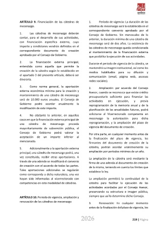 ARTÍCULO 9. Financiación de las cátedras de 1. Periodo de vigencia: La duración de las
