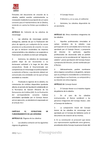 financiación, la cátedra se dará por extinguida. profesionales de reconocida valía se podrán
