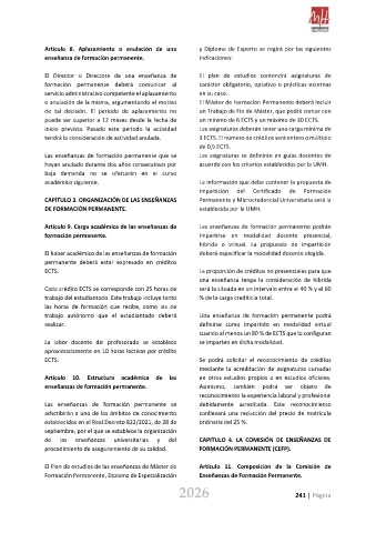 CAPÍTULO 3. ORGANIZACIÓN DE LAS ENSEÑANZAS Permanente y Microcredencial Universitaria será la