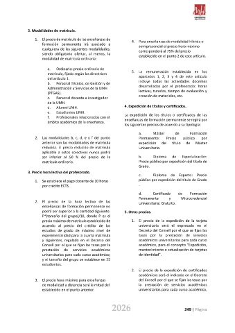 1. El precio de matrícula de las enseñanzas de 4. Para enseñanzas de modalidad híbrida o
