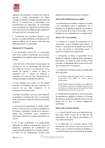 Artículo 123. El Presupuesto. en que intervenga la Universidad, previa la