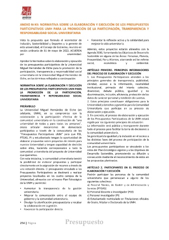 DE LOS PRESUPUESTOS PARTICIPATIVOS UMH PARA institucional, primacía del interés colectivo,