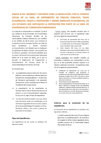 Normativa reguladora de los estudios propios Criterios para la resolución de los