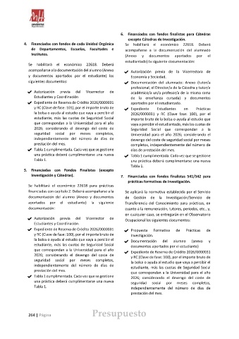 Investigación y Cátedras). 7. Financiadas con fondos finalistas 541/542 para