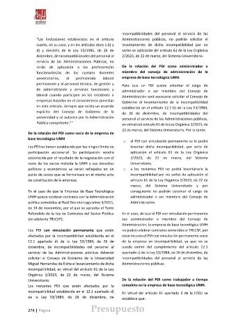 diciembre, de Incompatibilidades del personal al 2/2023, de 22 de marzo, del Sistema Universitario.