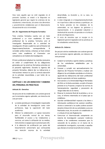 legislación general que regule las prácticas de los ● A estar integrado en el Departamento/Instituto