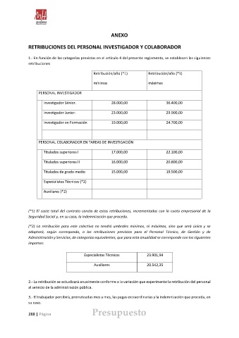 RETRIBUCIONES DEL PERSONAL INVESTIGADOR Y COLABORADOR