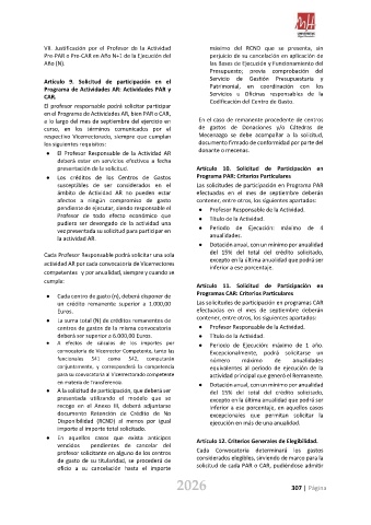 ● Los créditos de los Centros de Gastos Programa PAR: Criterios Particulares