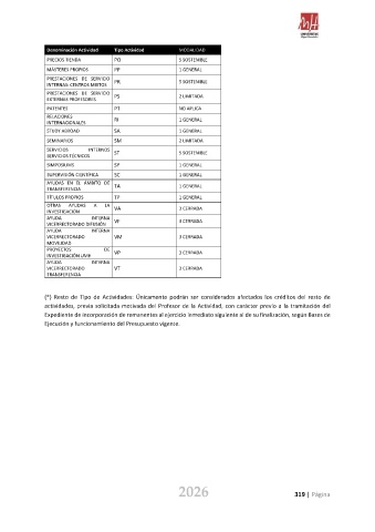 (*) Resto de Tipo de Actividades: Únicamente podrán ser considerados afectados los créditos del resto de