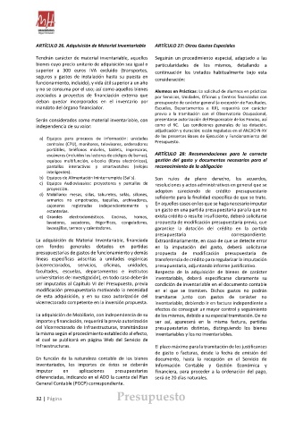 ARTÍCULO 26. Adquisición de Material Inventariable ARTÍCULO 27: Otros Gastos Especiales