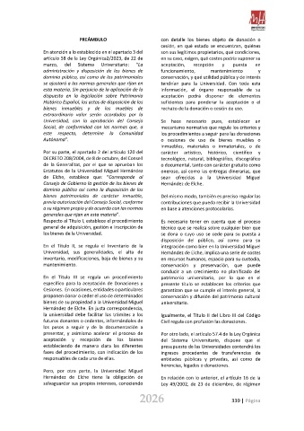 de Elche, establece que: “Corresponde al sean ofrecidas a la Universidad Miguel