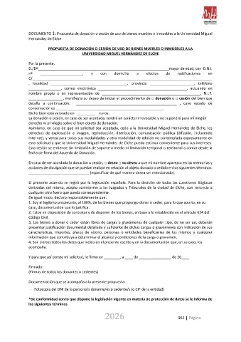 DOCUMENTO 1: Propuesta de donación o cesión de uso de bienes muebles o inmuebles a la Universidad Miguel