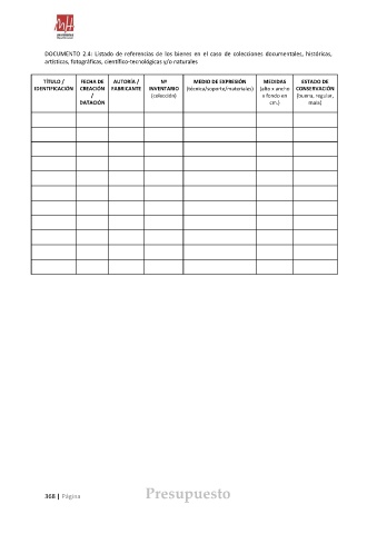DOCUMENTO 2.4: Listado de referencias de los bienes en el caso de colecciones documentales, históricas,