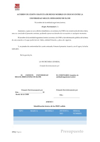 El (nombre de la entidad/organismo/centro) autoriza a la UMH a dar información pública de la firma