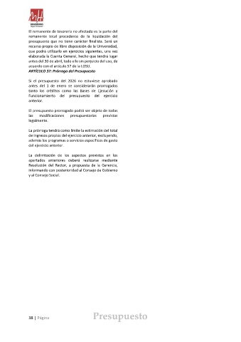 ARTÍCULO 37: Prórroga del Presupuesto