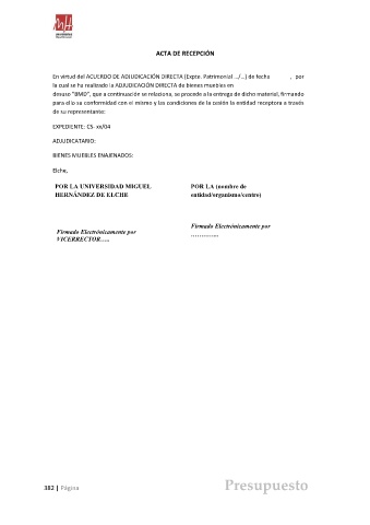 En virtud del ACUERDO DE ADJUDICACIÓN DIRECTA (Expte. Patrimonial …/…) de fecha , por
