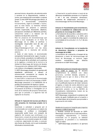 2. Dado el visto bueno, el vicerrectorado La tramitación de la donación, al margen de las
