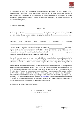 que por medio de su Rector recibe y acepta, la cantidad de ___________________ euros