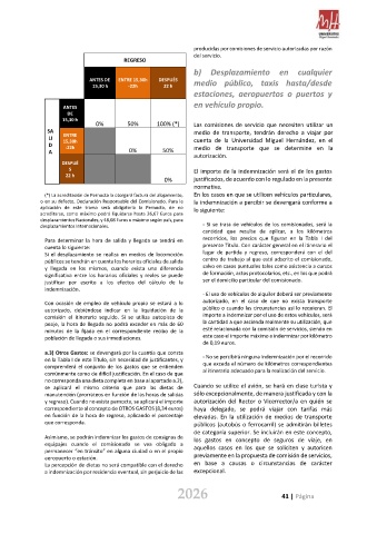 en función de la hora de regreso, aplicando el porcentaje elevadas. En la utilización de medios de transporte
