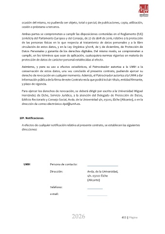 derecho de revocación en cualquier momento. Además, el Patrocinador autoriza a la UMH a dar