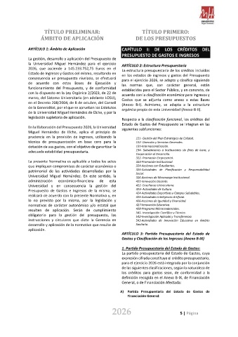 la Universidad Miguel Hernández para el ejercicio ARTÍCULO 2: Estructura Presupuestaria