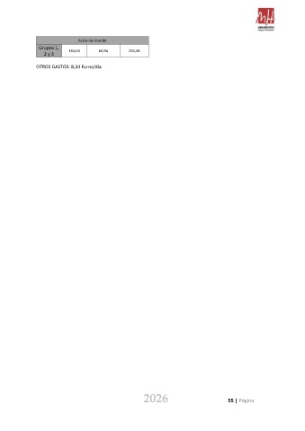 Resto del mundo Grupos 1, 2 y 3 165,63 60,94 226,58 OTROS GASTOS: 8,34 Euros/día 2026 55 | Página
