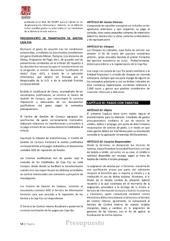 presupuestaria. ARTÍCULO 62: Objeto