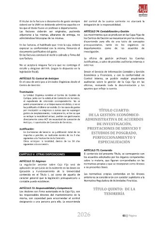 ARTÍCULO 71: Control de Anticipos Control Interno, se podrán realizar anualmente