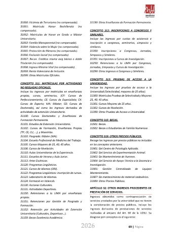 31101: Estudios de Extensión Universitaria. 31501: Becas.