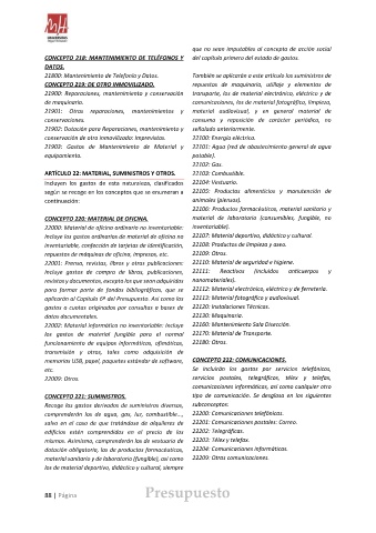 21903: Gastos de Mantenimiento de Material y 22101: Agua (red de abastecimiento general de agua